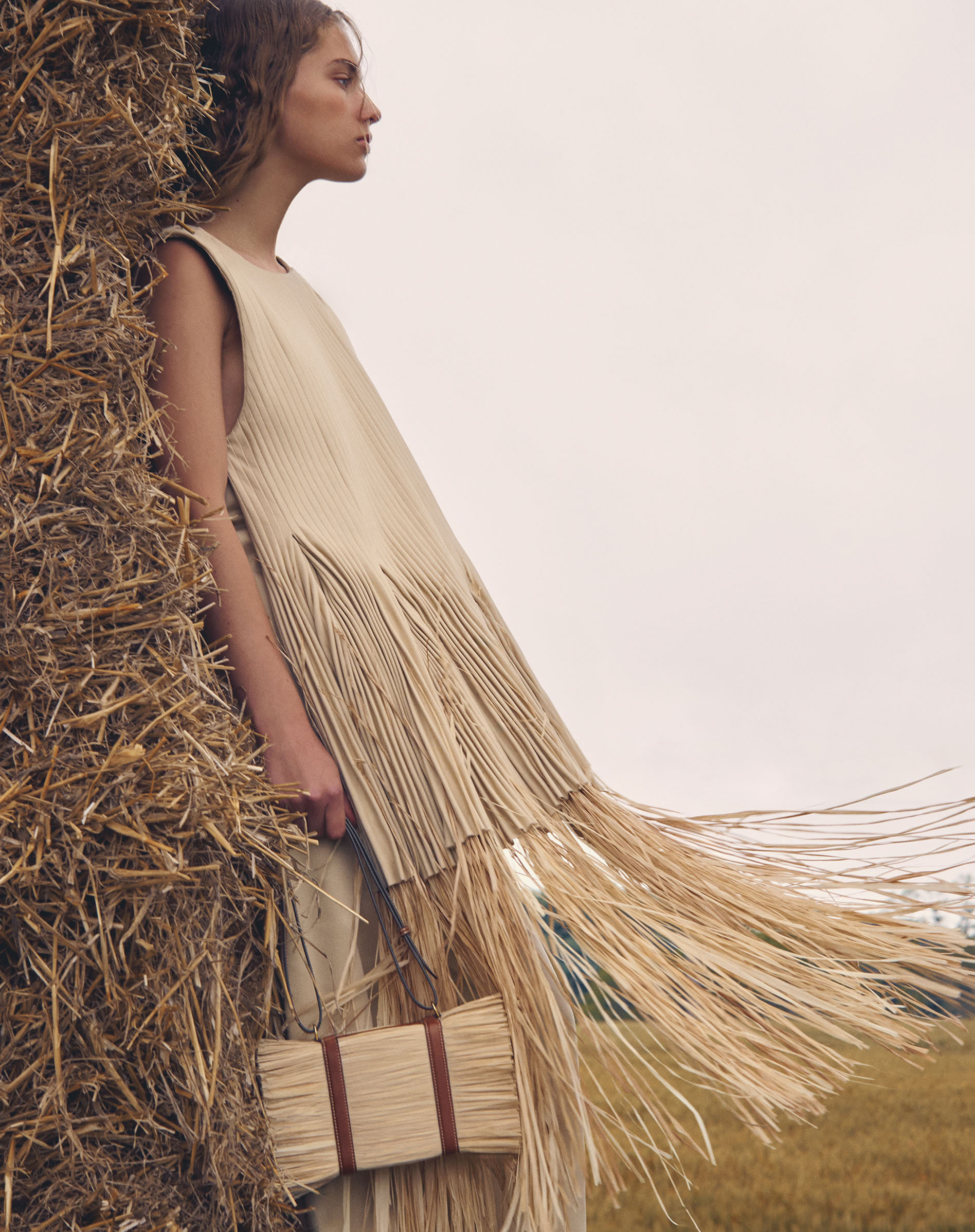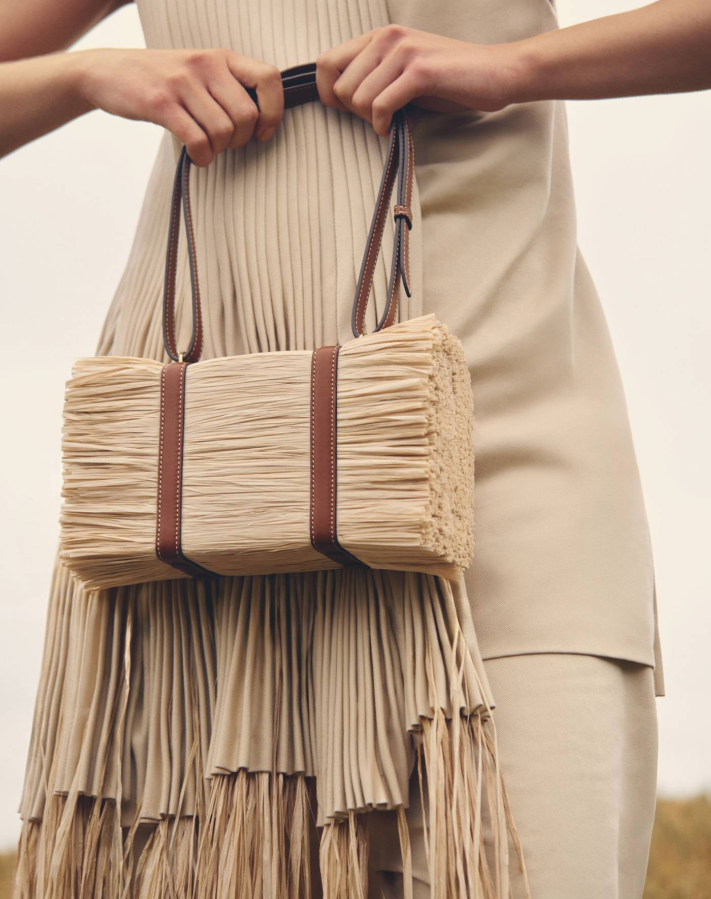 Die Illusion eines Strohballens wird zur Tasche: Das Modell „Paï“ ist ein kreatives und kunsthandwerkliches Meisterwerk aus natürlichem Bast. Der Hintergrund dieses neuen Modells ist ein kreativer Traum für ein Haus, dessen Kollektionsdesign von der Natur inspiriert ist. Das von zu 100 % natürlichen, biozertifizierten Bastfasern umhüllte Modell mit zwei Lederschnüren in Cognac und einem doppelten Trageriemen ist Ausdruck einer unmittelbaren Verbindung zur Natur.